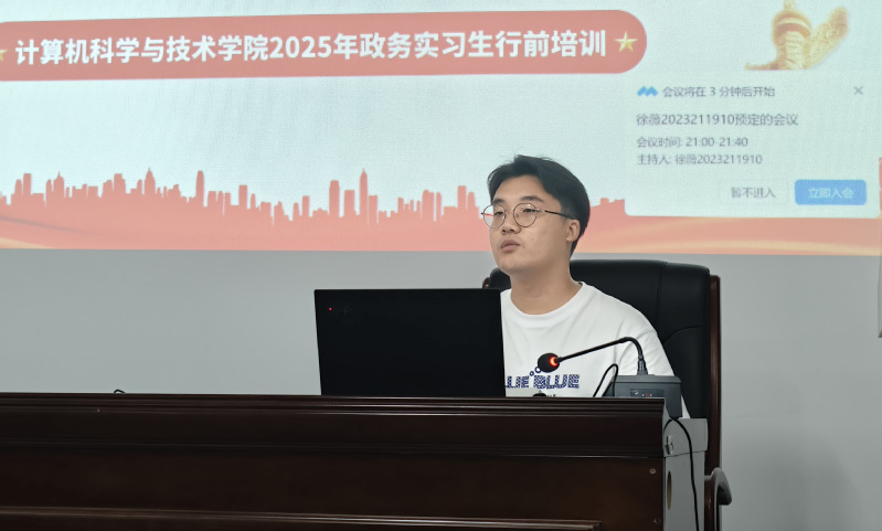 青春基层再启航,不待扬鞭自奋蹄。为引导学院政务实习生深入学习习近平新时代中国特色社会主义思想,提高政务工作素养,在实习中深度了解国情社情民情,7月9日晚上七点,计算机科学与技术学院于研究院北532开展政务实习行前培训。本次培训以“趁青春,去基层,到祖国最需要的地方去”为主题,特邀校区党委宣传部主任编辑隗海燕主讲新闻写作与拍摄培训,赵阳阳、姜昊知同学分享实习经验。