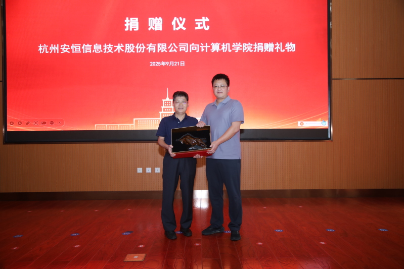 宁波校友会、杭州安恒信息技术股份有限公司向校区和学院捐赠礼物,同时为感谢社会各界与校友们的鼎力支持,学院为摩尔线程智能科技(北京)股份有限公司颁发“计算机学院教育贡献企业奖”,为9722班、9922班颁发“计算机学院教育贡献集体奖”,为天云净品(深圳)科技有限公司董事长胡荣华校友颁发“计算机学院教育贡献个人奖”。