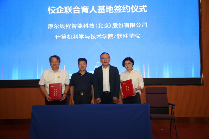 党建引领聚合力,校企共建促发展。近年来计算机学院各教工党支部通过党建共建的形式与各企、事业单位携手,在科研合作、人才培养等方面取得显著成果。本次论坛,北京市门头沟区科委党支部与计算机学院计算机科学与技术教师党支部、杭州安恒信息技术股份有限公司第八党支部、杭州迪普科技股份有限公司党总支与计算机学院网络空间安全系教师党支部、渔翁信息技术股份有限公司党支部与计算机学院行政实验教工党支部,现场签订党建共建协议。同时计算机学院与摩尔线程等知名企业签署联合育人基地合作协议,开启AI人才培养、国产算力生态建设方向的深度合作。