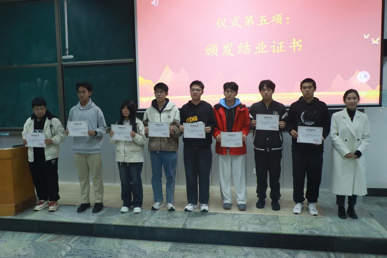 学院团委书记向妍宣读结业决定,肯定了学员们的学习成效,随后为各小班学员代表颁发结业证书。