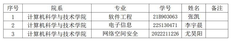 公示期间如有问题,请向计算机科学与技术学院学生工作办公室反映。