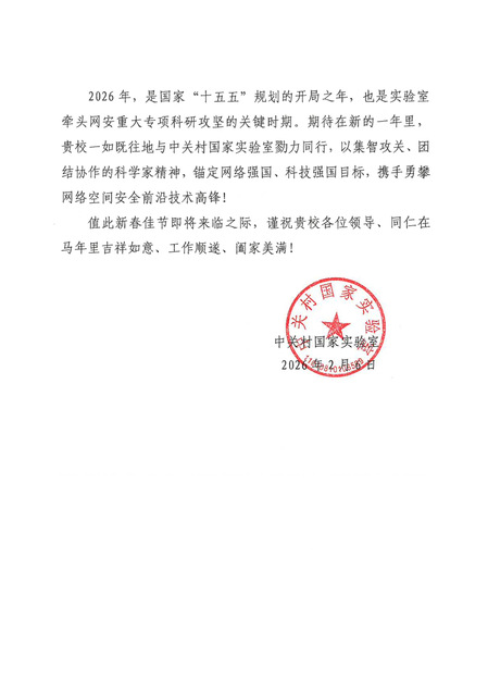 2026年是"十五五"规划的开局之年,也是国家网络空间安全科研攻坚的关键时期。学院号召全体教师以韩希先老师为榜样,胸怀"国之大者"、勇担时代使命,积极投身国家重大战略工程,以更高标准、更实举措推动学院事业再上新台阶,为服务国家高水平科技自立自强贡献更大力量。