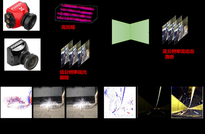 神经形态传感器凭借其异步事件驱动机制和卓越的高速动态捕捉能力,正在移动摄影领域引领技术革新。我校研究团队在该领域深耕细作,发表了多篇计算机视觉领域顶级期刊会议论文,为技术创新提供理论支持。传统可见光相机在低光照和高速运动等极端复杂场景下拍摄时,会出现亮度过暗和运动模糊等问题。现有方法难以同时处理这些退化,易产生伪影和时序不一致现象。为解决这些问题,我们团队提出了“基于频域扩散与时空注意力的低光照视频增强方法”,利用频域特性与自然图像生成先验结合形态传感器的高动态成像特征,实现亮度与清晰度的同步增强。此外,在高速运动场景下,传统RGB相机难以消除运动模糊。我们提出了“基于时空隐式表达的事件运动去模糊方法”,利用形态学传感器的高时间分辨率和高动态特性,通过尺度感知的时空特征聚合策略,融合不同时空尺度的事件数据,处理高速运动场景的运动模糊,显著提升重建视频的清晰度,实现高速、高动态视频数据的恢复和重建。通过与小米等手机制造商合作,将这些高精度动态观测算法融入手机摄影中,为用户提供了前所未有的动态捕捉体验及清晰成像效果。这些成就不仅展示了团队的技术实力和创新能力,也为推动相关产业升级做出了贡献。通过融合创新,事件相机不仅丰富了手机移动摄影功能,还促进了整个产业链的发展,如传感器制造、计算机视觉算法研发等。未来,我们将继续深化对新型神经形态传感器的研究,探索其在更多新兴领域的应用可能性,如无人机、自动驾驶和虚拟现实等。同时,加强与国内外企业的合作,共同推进神经形态传感器技术的进步与发展。